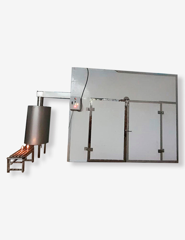 - Fuente de calor: Gas (GLP o Natural). Unidad de calor con quemadores a gas tipo flauta con encendido por piloto.