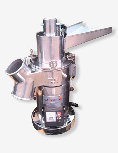 Molino de alta velocidad para producir polvos super finos. Esta fabricado en acero inoxidable. Este equipo se puede utilizar en el campo de los productos farmacéuticos, químicos, alimentos y otros. Las ventajas de la misma Genera muy poco polvo lo cual da como ventaja la alta utilización de la materia prima reduciendo de esta manera los costos. Sabor original y el color del material se garantizarán en el proceso.