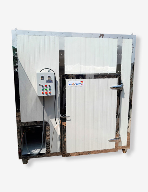 - Sistema de flujo de aire caliente re circulante (turbina) para uniformizar temperatura de la cámara y garantizar proceso homogéneo de deshidratado